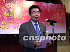 專程前來澳門出席酒會的中新社副社長兼總編輯郭招金在致辭時說,中國新聞社是向港澳同胞、臺灣同胞、華僑華人提供新聞、文化服務的通訊社,總社設在北京。經(jīng)過五十年的發(fā)展,中新社已建立起比較完整的新聞采集體系,在中國內(nèi)地的二十五個省、自治區(qū)、直轄市設有五十六個分社、支社、記者站。在香港、澳門特別行政區(qū),在美國、澳大利亞、日本、法國、泰國建有分支機構,F(xiàn)在中新社每天播發(fā)新聞電訊稿一百條,傳真圖片三十張。中國新聞網(wǎng)每天更新新聞三、四百條,中國新聞圖片網(wǎng)每天更新新聞圖片一百幅。中新社還辦有《新聞周刊》、《華聲視點》、《中國經(jīng)濟周刊》、《中華文摘》、《時代傳媒》等刊物以及制作影視節(jié)目的影視部。每天向海外幾十家報紙?zhí)峁⿲8搴椭谱魇邆報紙版面。