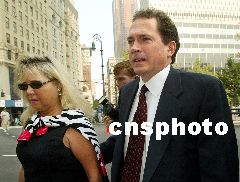 9月4日,世通公司前首席財務(wù)官斯克特·沙利文前往法庭應(yīng)訴。他被指控制造假帳,隱瞞了世通公司38億美元的虧空。Ic/cnsphoto 攝