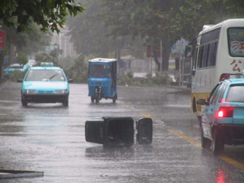 盡管離“森拉克”登陸還有2、3個(gè)小時(shí)左右,但臺(tái)風(fēng)的影響已給溫州造成部分破壞。(董晶亮)