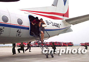 演練在下午二點十分開始:一架由廣州飛往綿陽的運七航班飛機被兩名“歹徒”劫持,機上共有乘客五十名。一名持刀“歹徒”挾持婦女為人質,另一“歹徒”聲稱攜帶有炸彈,索要人民幣二百萬元。當?shù)毓矙C關接到報警后,馬上采取了緊急救援程序。武警、巡警、刑警、消防等相關部門近千名警員、近百輛警車和特種車輛,在二十分鐘內(nèi)集結到位,對機場進行了封鎖和控制。