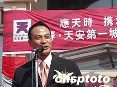 近日,由香港天安(中國)投資有限公司投資的長春天安第一城樓盤在長春開盤,香港影星任達(dá)華作為嘉賓出席了開盤儀式。 作者:韓丹