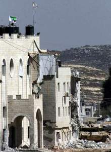美聯(lián)社報(bào)道,當(dāng)天早些時(shí)候,阿拉法特曾經(jīng)呼吁巴勒斯坦武裝分子停止對(duì)以色列的襲擊活動(dòng),但他依然拒絕交出躲藏在自己身邊的20名“以軍通緝犯”。目前,以色列軍隊(duì)已經(jīng)將阿拉法特圍困在官邸二樓的四間房子內(nèi),并將大樓的一部樓梯予以摧毀。據(jù)說(shuō),由于以軍炮彈曾經(jīng)擊中官邸三樓,四下亂飛的塵土將阿拉法特變成了“灰人”。