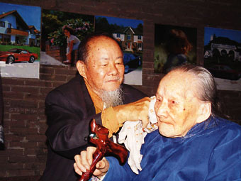 十五年來,劉治國年年回鄉(xiāng)探母、祭祖,每年都選在中秋或清明前后。幾年前,他忽然中風,后雖恢復(fù)卻也有些行動不便,臺灣的兒女們勸他當年就別回故鄉(xiāng)了,可他仍掛念老母,最終還是在兒子的陪同下回到遂寧。為使母親和弟弟有更好的生活條件,他出資在城里蓋了一棟樓,供他們居住,但老母親仍習慣居住空氣清新的鄉(xiāng)間,他還把母親接到臺灣盡孝,年邁的母親也因住不習慣回了家鄉(xiāng)。劉治國每次回來,都會給母親帶來大量滋補品,記者見到劉先生在喂母親葡萄時,小心翼翼,去掉皮和籽,并一點一點喂到母親口中。劉先生說:羊有跪乳之恩、烏鴉有反哺之義。孝道是中華民族獨有的優(yōu)良傳統(tǒng),我平時都教育兒孫一定要把它發(fā)揚下去。