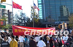 當(dāng)?shù)貢r間九月二十九日中午,在熱鬧的紐約法拉盛緬街上,飄揚(yáng)起一面五星紅旗。紐約華人今天在此舉行升旗儀式,慶祝中華人民共和國成立五十三周年。作者:趙海燕