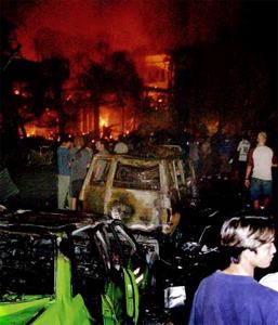 直到周日凌晨,在上述夜總會的現(xiàn)場仍然是濃煙滾滾,直沖云宵,與此同時警察及救援人員將受傷者和遇難者抬離現(xiàn)場,其中一些傷者還在痛苦地呻吟著。警方稱,預(yù)計還有一些傷者被埋在廢墟下面。巴厘島警方發(fā)言人亞蒂姆-蘇亞特姆表示,警方認(rèn)為所有的爆炸設(shè)備均為自制炸彈。