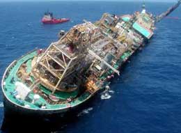 14日晚,由于突然停電,這個叫P-34的鉆油船內(nèi)的儲存的石油流向船內(nèi)油箱的一側(cè),導(dǎo)致船體發(fā)生嚴(yán)重傾側(cè),傾斜度達(dá)30度。在船上工作的76名工人隨即被撤離到另一個鉆井平臺上,據(jù)該公司發(fā)言人稱,目前該船上約1200萬升的石油沒有發(fā)生泄漏,船上也沒有出現(xiàn)著火或爆炸。