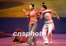十五日晚,中新社成立五十周年暨甘肅分社成立一周年專場(chǎng)文藝晚會(huì)在蘭州黃河劇場(chǎng)舉行,剛從美國(guó)載譽(yù)歸來(lái)的甘肅敦煌藝術(shù)劇院鼎力奉獻(xiàn)大型舞劇《天馬蕭蕭》,向人們展示了成熟的敦煌舞蹈藝術(shù)。