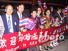 專程從泰王國(guó)飛抵海口迎接詩(shī)琳通公主的一百多名泰國(guó)海南鄉(xiāng)親,在機(jī)場(chǎng)拉起了寫著泰文與中文的橫幅,揮舞著中國(guó)、泰國(guó)國(guó)旗,在十五的滿月下笑迎詩(shī)琳通公主。
