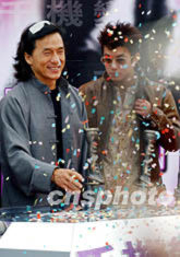 香港明星成龍與眾多明星,10月21日旋風(fēng)出席英皇集團(tuán)投資的新片《千機(jī)變》開鏡儀式。洪少葵 攝