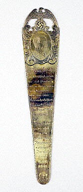 10月21日,西班牙政府官員透露3名強盜上周闖入首都馬德里一家拍賣行,將該行準備拍賣的納粹頭目希特勒的一枚純金書簽搶走。這枚純金書簽是希特勒的情婦愛娃于1943年送給希特勒的。