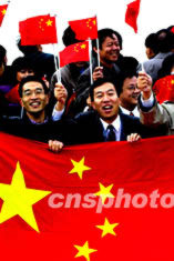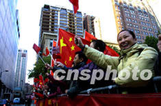 22日,旅美華人華僑匯聚在芝加哥市中心里茲酒店前,在秋風(fēng)中揮舞國(guó)旗,熱烈歡迎中國(guó)國(guó)家主席江澤民首次訪問芝加哥。作者:王瑤
