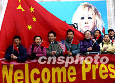 江澤民主席應(yīng)布什總統(tǒng)邀請(qǐng)?jiān)L問美國(guó),22日抵達(dá)芝加哥奧黑爾機(jī)場(chǎng),受到當(dāng)?shù)厝A人華僑的熱烈歡迎。作者:王瑤