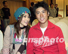 歌星陳慧琳、陳司翰10月23日在香港出席《TVB8金曲榜頒獎典禮2001/2002》記者會。陳司翰剛從外地返港,難得與陳慧琳出席同一活動聚首。鄧慶樂 攝