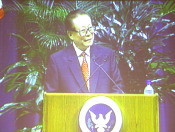 圖文快訊:江澤民主席在布什圖書館發(fā)表演講