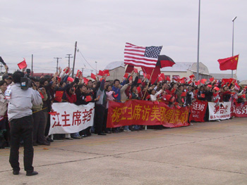 當(dāng)江澤民專機(jī)降落在洛斯卡沃斯國際機(jī)場(chǎng)時(shí),中國香港特區(qū)行政長官董建華夫婦,先期抵達(dá)的中國外交部長唐家璇,外經(jīng)貿(mào)部長石廣生、中國駐墨西哥大使李金章和墨西哥一名副外長等在舷梯旁迎接。