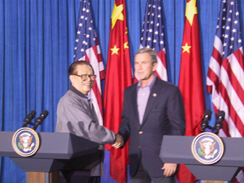 江澤民與布什討論朝鮮核問題重申中國一貫立場