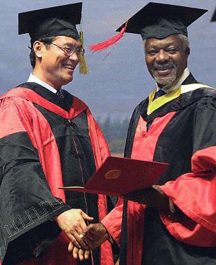 中新網(wǎng)11月2日電 聯(lián)合國(guó)秘書長(zhǎng)科菲·安南10月14日在位于中國(guó)杭州的浙江大學(xué)接受名譽(yù)博士學(xué)位,并發(fā)表演講。上海新民周刊在第200期中全文刊出安南此次演講的全文,F(xiàn)引錄如下——
