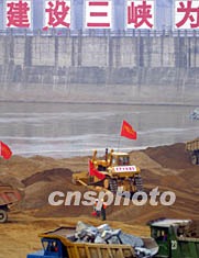 長江三峽導流明渠截流昨天進入強進占的第二天。由于龍口不斷縮小,水流速度加快,導流明渠截流的難度開始加大。龍口收口的關鍵物質———重達30噸的混凝土四方體石塊,也已經大量投入使用。