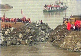 圖:三峽導(dǎo)流明渠截流上游圍堰合龍成功