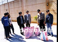一個(gè)在深圳沙頭角某住宅樓利用魚槍發(fā)射鋼絲在深港兩地搭起一條走私手機(jī)的“空中運(yùn)輸線”、企圖大肆走私手機(jī)的犯罪團(tuán)伙,六日被深圳海關(guān)緝私警察全部抓獲,繳獲走私進(jìn)口手機(jī)一百六十三部、手機(jī)電池九十六個(gè)、耳機(jī)一千二百個(gè)。圖為被抓獲的走私分子。作者:張曹