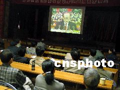 享有鄉(xiāng)村都市美稱的安徽省淮南市毛集實驗區(qū)六百多名中共黨員和干部,今天上午集中守候在電視機(jī)的熒屏前,收看中共十六大開幕的情景。