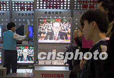 在素有“神州第一街”之稱的王府井大街和西單商業(yè)街上,上百面彩旗迎風起舞,近千盞燈籠高高懸掛,迎接十六大勝利召開的橫幅、標語和多媒體大屏幕櫛次鱗比,令人目不暇接。許多手拿小紅旗的顧客被不時傳出的掌聲所吸引,紛紛涌向商場里的視聽專賣區(qū),而商家們也自發(fā)地把所有的電視機都調(diào)到了中央電視臺的直播頻道,有的商場還為顧客擺放了坐椅。