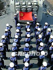 解放軍東海艦隊(duì)官兵在中共十六大召開之際列隊(duì)宣誓,堅(jiān)決履行好守護(hù)祖國海疆的神圣使命。作者:鐘魁潤