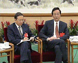江澤民李鵬李瑞環(huán)參加討論與代表談建設小康社會