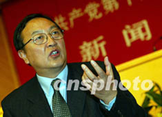 中共十六大代表、聯(lián)想集團(tuán)董事局主席柳傳志十一日晚在十六大新聞中心接受中外記者訪問。作者:毛建軍