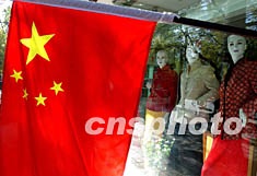 圖:京城街頭的國(guó)旗與模特