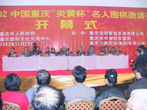 二零零二中國重慶“炎黃杯”名人圍棋邀請(qǐng)賽今天上午在此間正式開枰。在未來幾天時(shí)間里,來自世界各地的炎黃子孫們將在山城重慶及壯美的長江上紋枰論道,以棋會(huì)友。
