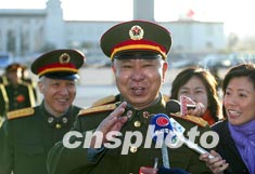 解放軍代表隗福臨步入會(huì)場(chǎng)時(shí)受到媒體關(guān)注。