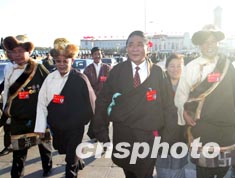 藏族代表們清晨步入會(huì)場(chǎng)。