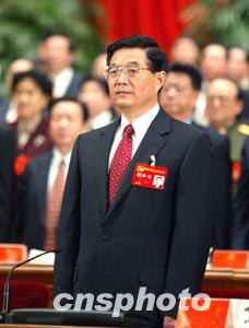 朱镕基與胡錦濤出席十六大閉幕會(huì)