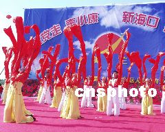 中新社海口十一月十四日電 題:情滿?谌f綠園 萬眾歡慶十六大