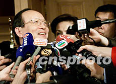 臺(tái)灣“中國臺(tái)商發(fā)展促進(jìn)會(huì)”理事長章孝嚴(yán)二十二日與國務(wù)院臺(tái)辦主任陳云林就大陸臺(tái)商包機(jī)返鄉(xiāng)過年問題交換意見后,被港澳臺(tái)記者圍堵。作者:鄭萍萍