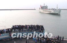 今天下午四時十分,在一片璀燦的陽光中,巨大的“粵海鐵一號”火車輪渡仿佛在一片琉璃上滑入了南港港池,海南八百萬人民數(shù)百年的跨海夢想就那樣輕輕地實現(xiàn)了——有一絲絲不真實,有一絲絲感動,記者看到許多人的眼中閃著淚光。