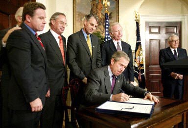 白宮方面最早反對(duì)建立獨(dú)立調(diào)查委員會(huì),但是來(lái)自那些失去親人的家庭的壓力迫使布什總統(tǒng)改變主意。