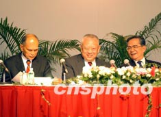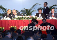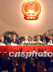 香港特區(qū)第十屆全國(guó)人民代表選舉第二次全體會(huì)議11月29日在香港召開(kāi),全國(guó)政協(xié)副主席霍英東、香港特首董建華、全國(guó)人大常委會(huì)秘書(shū)長(zhǎng)何椿霖出席港區(qū)人大代表選舉會(huì)議,會(huì)議通過(guò)總監(jiān)票人及監(jiān)票人名單.中新社傳真 洪少葵 攝