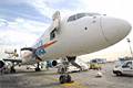 組圖:機(jī)場工作人員在檢查波音757客機(jī)有無受損