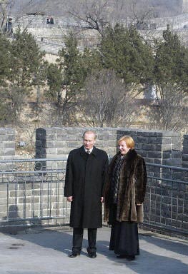 中新網(wǎng)12月3日電 俄羅斯總統(tǒng)普京和夫人普京娜3日中午來(lái)到北京西北約70公里處的八達(dá)嶺長(zhǎng)城,游覽這一舉世聞名的歷史古跡。