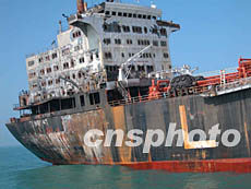 圖:巴拿馬籍萬噸失事油輪消除隱患