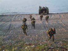 5日清晨,聯(lián)興88號(hào)操演地點(diǎn),海象相當(dāng)良好,風(fēng)平浪靜,操演正式下達(dá)命令后,只見海軍兩棲登艦艇,在空軍戰(zhàn)斗機(jī)及陸軍攻擊直升機(jī)掩護(hù)下,載運(yùn)包括戰(zhàn)車、捍馬車等車輛及海軍陸戰(zhàn)隊(duì)官兵弟兄們,發(fā)動(dòng)5、6波搶灘登陸,與岸上反登陸部隊(duì)發(fā)生激戰(zhàn),在完成消滅岸上反登陸部隊(duì)及清除岸上地雷后,順利搶灘登陸成功。