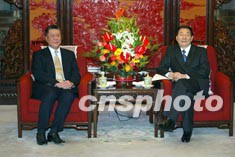 中國(guó)國(guó)務(wù)院總理朱镕基九日在北京中南海會(huì)見(jiàn)前來(lái)述職的澳門(mén)特別行政區(qū)行政長(zhǎng)官何厚鏵。作者:毛建軍