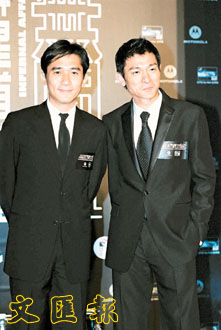 據(jù)港報(bào)報(bào)道,幾位主角劉德華﹑梁朝偉﹑陳冠希﹑黃秋生及余文樂(lè)等,都穿黑色服裝出席,而到場(chǎng)的唯一一位女演員蕭亞軒卻穿得十分鮮艷,形成強(qiáng)烈對(duì)比。眾演員先在時(shí)代廣場(chǎng)的露天廣場(chǎng)舉行祝酒儀式,為見(jiàn)偶像一面,現(xiàn)場(chǎng)早已圍滿(mǎn)了數(shù)百fans,而到場(chǎng)采訪(fǎng)的記者也近百人。當(dāng)劉德華與梁朝偉出場(chǎng)時(shí),fans不停尖叫,兩位男主角更互斗電力,偉仔單眼,華仔則瞇眼,不時(shí)做出放電的表情,令現(xiàn)場(chǎng)fans“喧嘩鬼叫”。