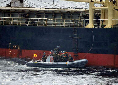 西班牙國(guó)防部長(zhǎng)特里略透露,在船上發(fā)現(xiàn)15枚飛毛腿導(dǎo)彈,還有15個(gè)常規(guī)彈頭和幾十箱化學(xué)品,這些化學(xué)品中包括硝酸。