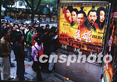由張藝謀執(zhí)導(dǎo)的武俠巨片《英雄》二十日在福州上映。影片開(kāi)映前,電影院門(mén)口排起了長(zhǎng)長(zhǎng)的購(gòu)票隊(duì)伍。作者:鄭祚聲