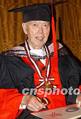 中新社香港十二月二十三日電 (記者陶社蘭)八十七歲的著名僑領(lǐng)、香港企業(yè)家許東亮先生以其愛國愛鄉(xiāng)的事跡和對僑教公益事業(yè)所做的積極貢獻(xiàn),獲頒華僑大學(xué)名譽(yù)博士學(xué)位。今天,國務(wù)院僑務(wù)辦公室副主任、華僑大學(xué)董事會(huì)副董事長劉澤彭在此間為許東亮先生頒授學(xué)位。