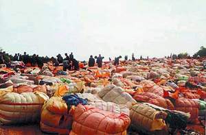 連日來,陸豐、碣石等三級黨委、政府針對陸豐碣石鎮(zhèn)瘋狂走私洋垃圾衫一事,積極組織包括海關、邊防、公安、工商等專項隊伍,出動1000余人次,對陸豐碣石鎮(zhèn)的所有市場、村莊等采取逐家清查的地毯式清理。到昨天為止,共查獲洋垃圾衫達1200捆、近100噸。