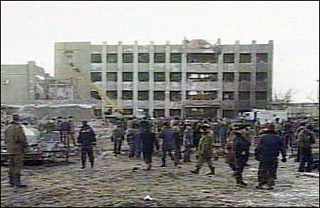 據(jù)報道,當(dāng)?shù)貢r間當(dāng)天下午2時30分左右,兩名恐怖分子分別駕駛裝有爆炸物的一輛貨車和一輛小轎車,幾乎同時突破車臣政府大樓的側(cè)面圍欄沖向大樓。劇烈爆炸使大樓嚴重毀壞,只剩下樓體框架。